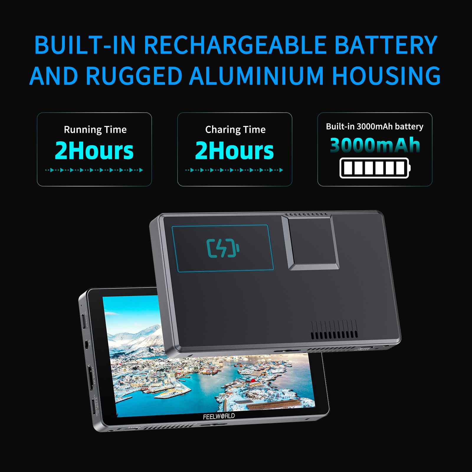 FEELWORLD always focus on the products which can less the photograph equipment for the user, and first release built-in battery monitor P6XL. It built-in 22.2Wh/7.4V battery and can easy to charge via Type-C port, no need to carry additional battery. Equipped with 6-inch full HD high brightness screen, easy to start creative whatever where you go, that's perfect for vloggers, creatives and photographers.